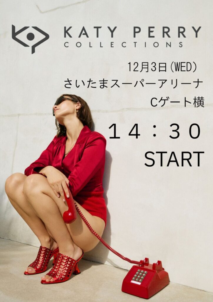 Katy Perry’s shoe brand, Katy Perry Collections, will be available for purchase next to Gate C from 2:30 PM on the day of the performance. Guests without tickets are also welcome to make purchases, so please take advantage of this opportunity.